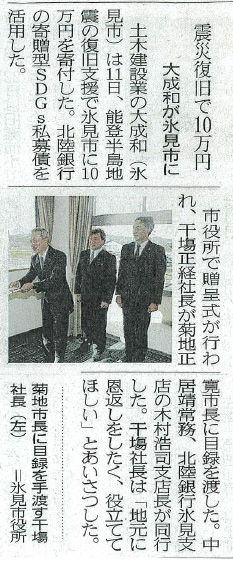 令和7年6月11日に林野庁近畿中国森林管理局長より、令和6年能登半島地震及び奥能登豪雨に際し、山地における応急対策工事に尽力し、被害拡大の防止や被災地の復旧に貢献したことに際して感謝状をいただきました。
