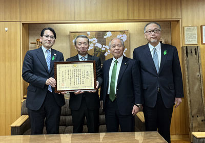 弊社は、「緑の募金」に賛同し、林野庁長官 青山豊久様より感謝状を授与されました。この活動は、森林のある豊な暮らしを未来につなぐとともに、SDGsへの貢献にもつながっています。